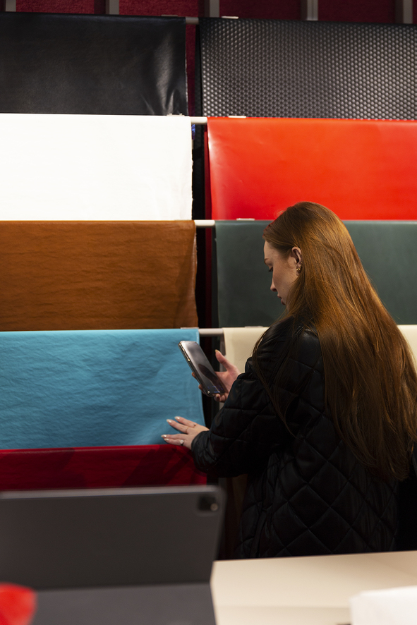 Durante i giorni della fiera, lo stand Limonta si è colorato delle nuove sfumature per l’Estate 2025: accesi o pastello, il rosa, l’azzurro, il turchese e il verde si sono alternati ai classici colori cuoio, bianco e rosso. Accanto agli innovativi effetti perlati e laminati, tra le novità del secondo capitolo di Altera è stata presentata un’innovativa vernice: Galì.