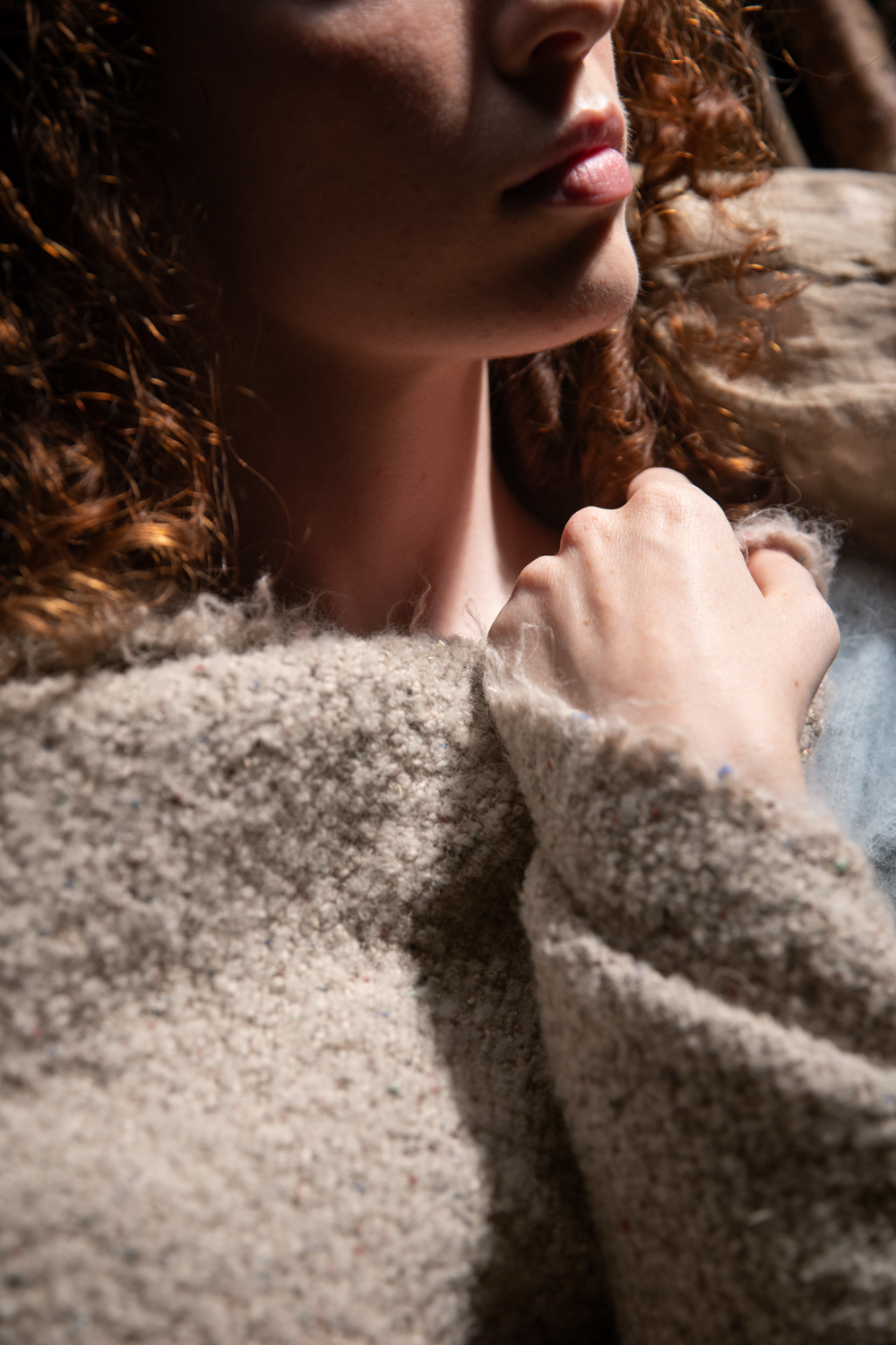 “Con-tatto” introduce il tema della contaminazione, espressa come fusione tra mondo tessile e moda. Materiali e lavorazioni si fondono armoniosamente con le tonalità della stagione – Alloro, Henné, Luna e Malto – ispirate rispettivamente alle quattro fasi della giornata: pomeriggio, tramonto, notte e alba. Il tatto è il senso attraverso cui la collezione invita a far conoscere i suoi tessuti voluminosi e le sue texture sofisticate.