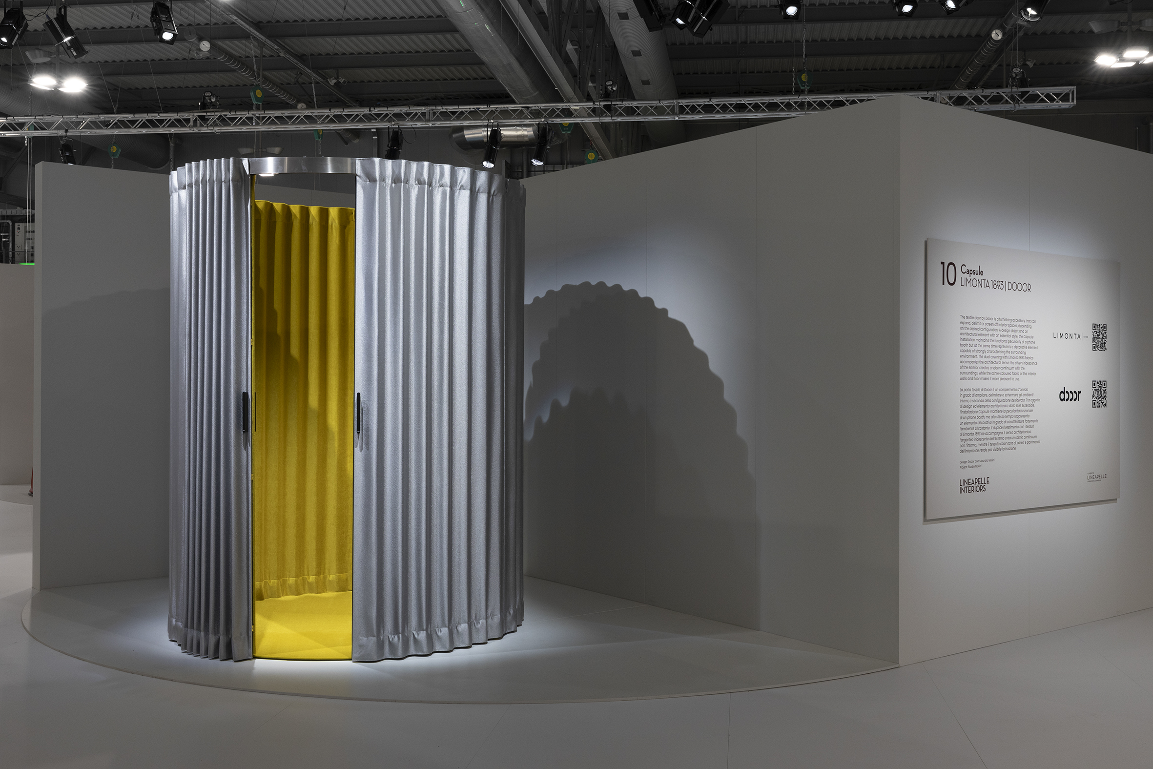 Infine, Limonta ha partecipato alla seconda edizione di Lineapelle Interiors attraverso una collaborazione con Dooor, realizzando un’installazione che vede l’uso di due tessuti diversi applicati al design innovativo di una porta tessile.