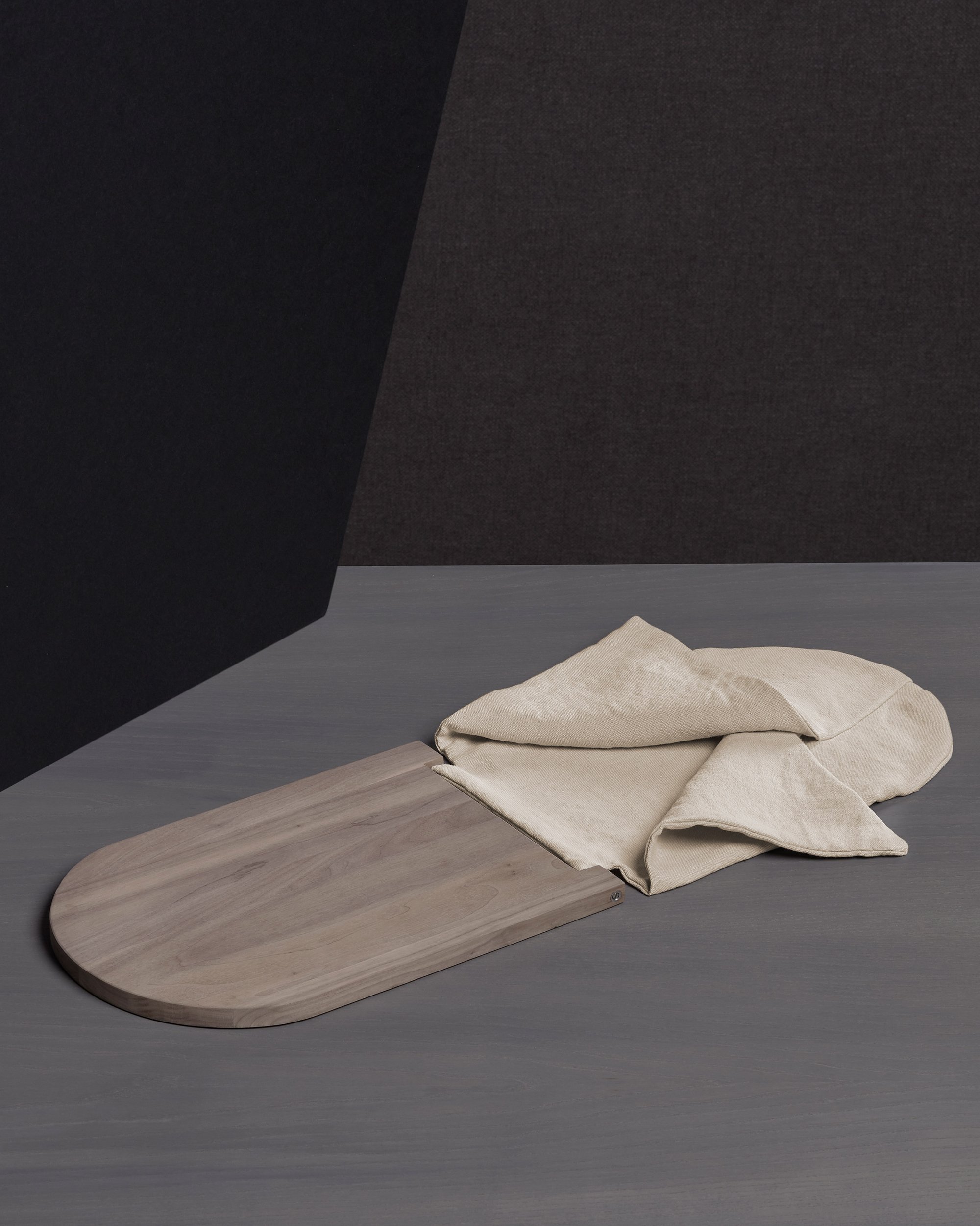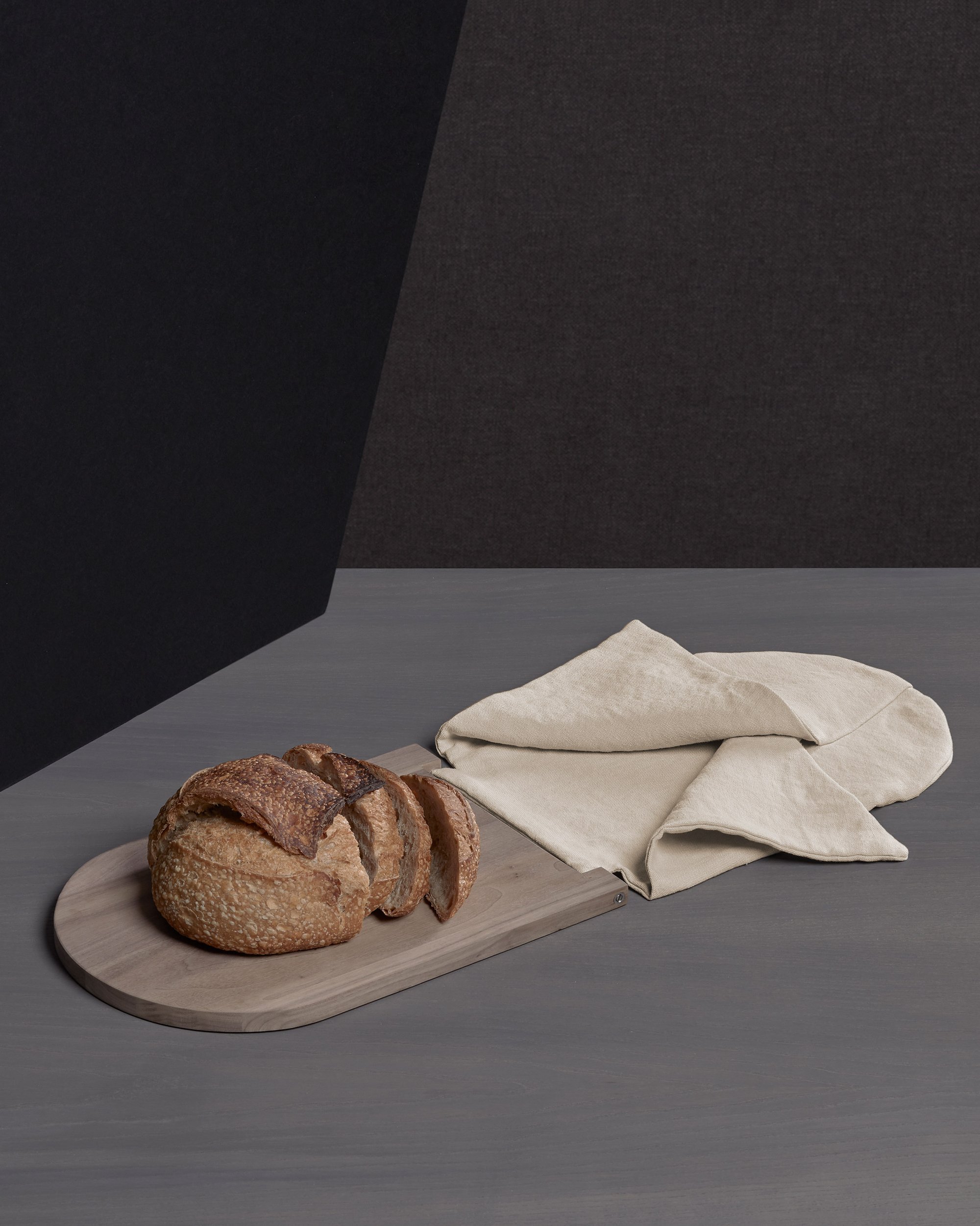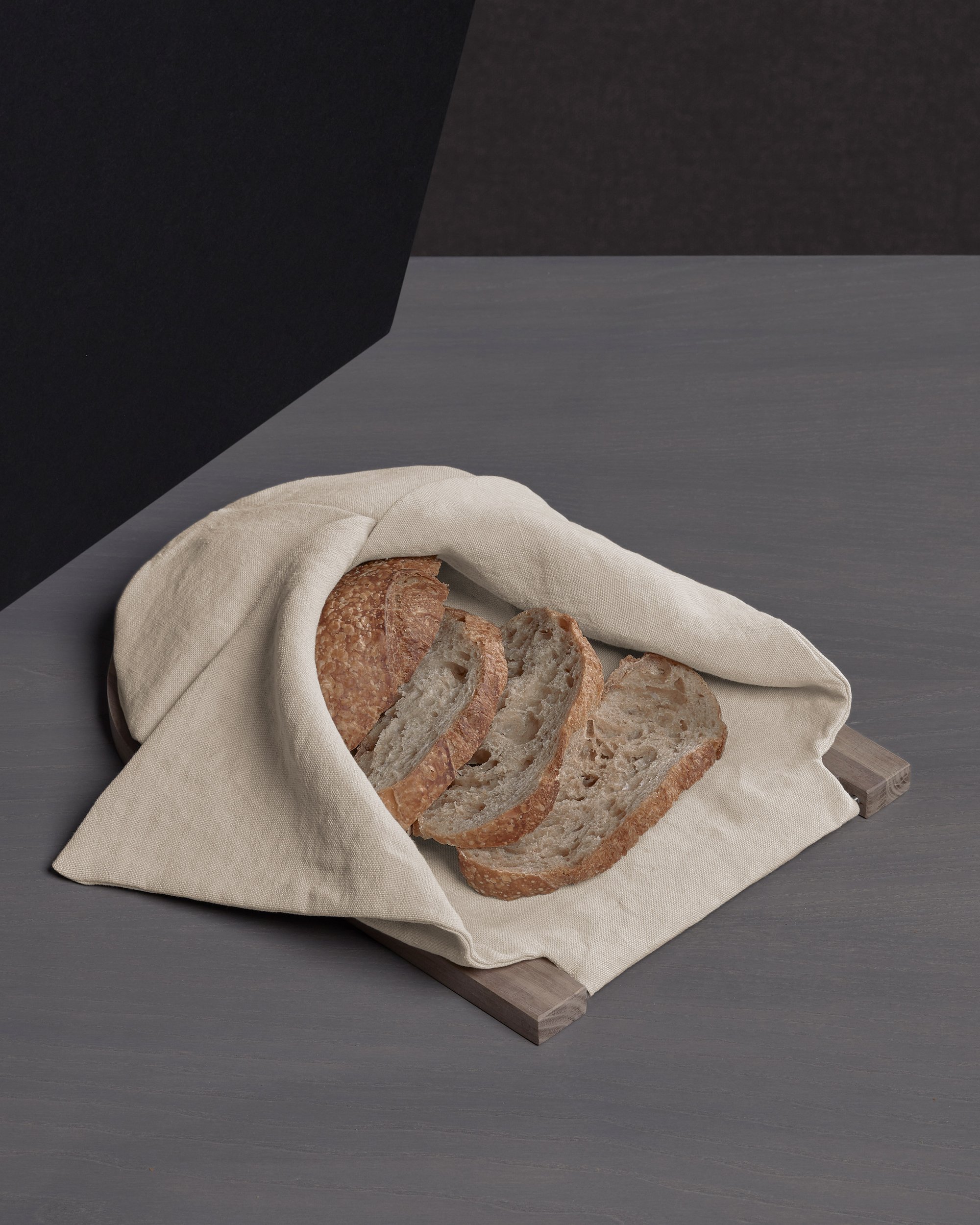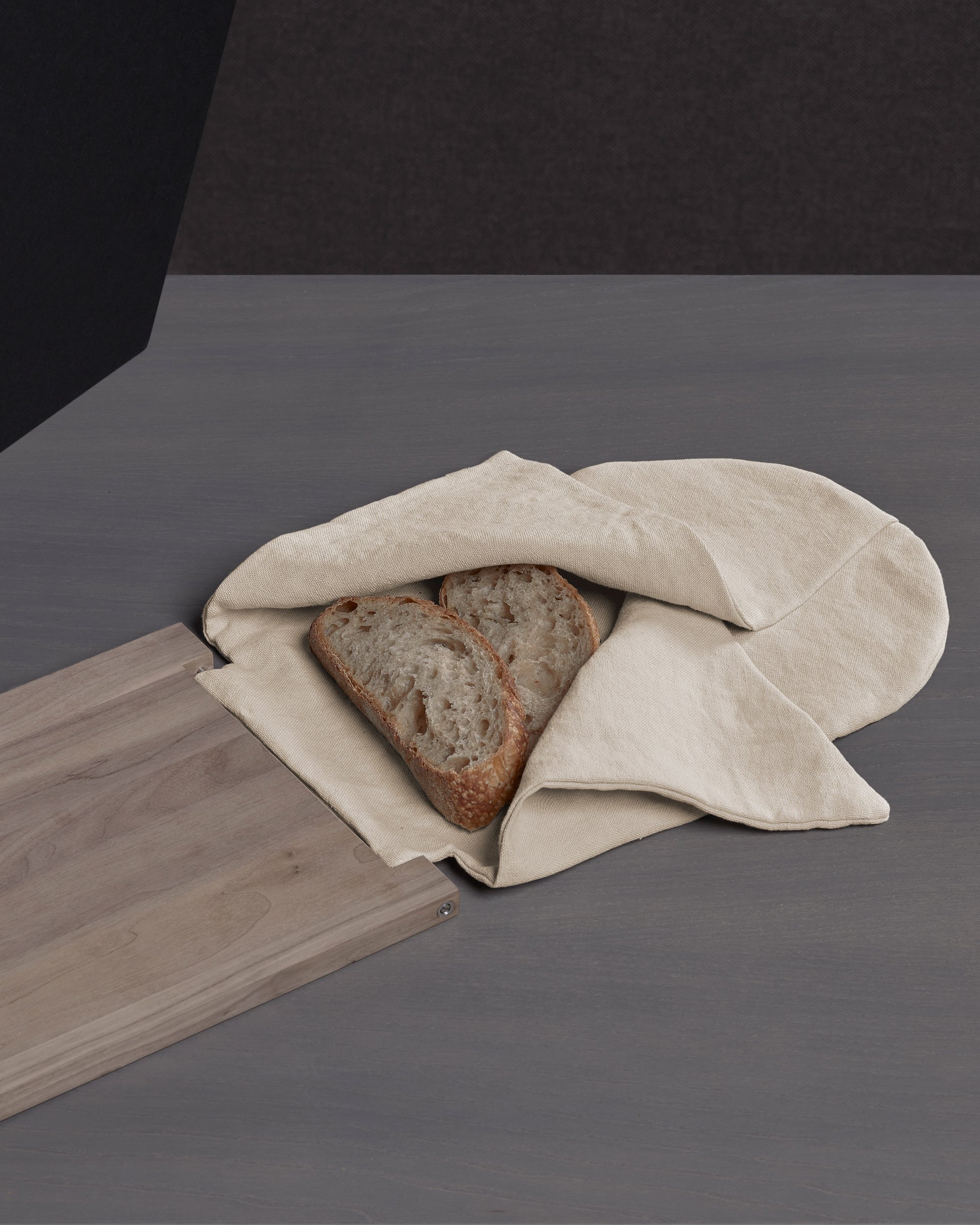Nella sua rivisitazione contemporanea il tagliere per il pane raccoglie semplici gesti quotidiani in un solo momento: tagliare il pane, servirlo e riporlo per conservarlo. Un progetto narrante, capace di raccontare una storia e veicolare idee e valori nel quotidiano, come il rito della condivisione del pane, simbolo della convivialità per eccellenza.